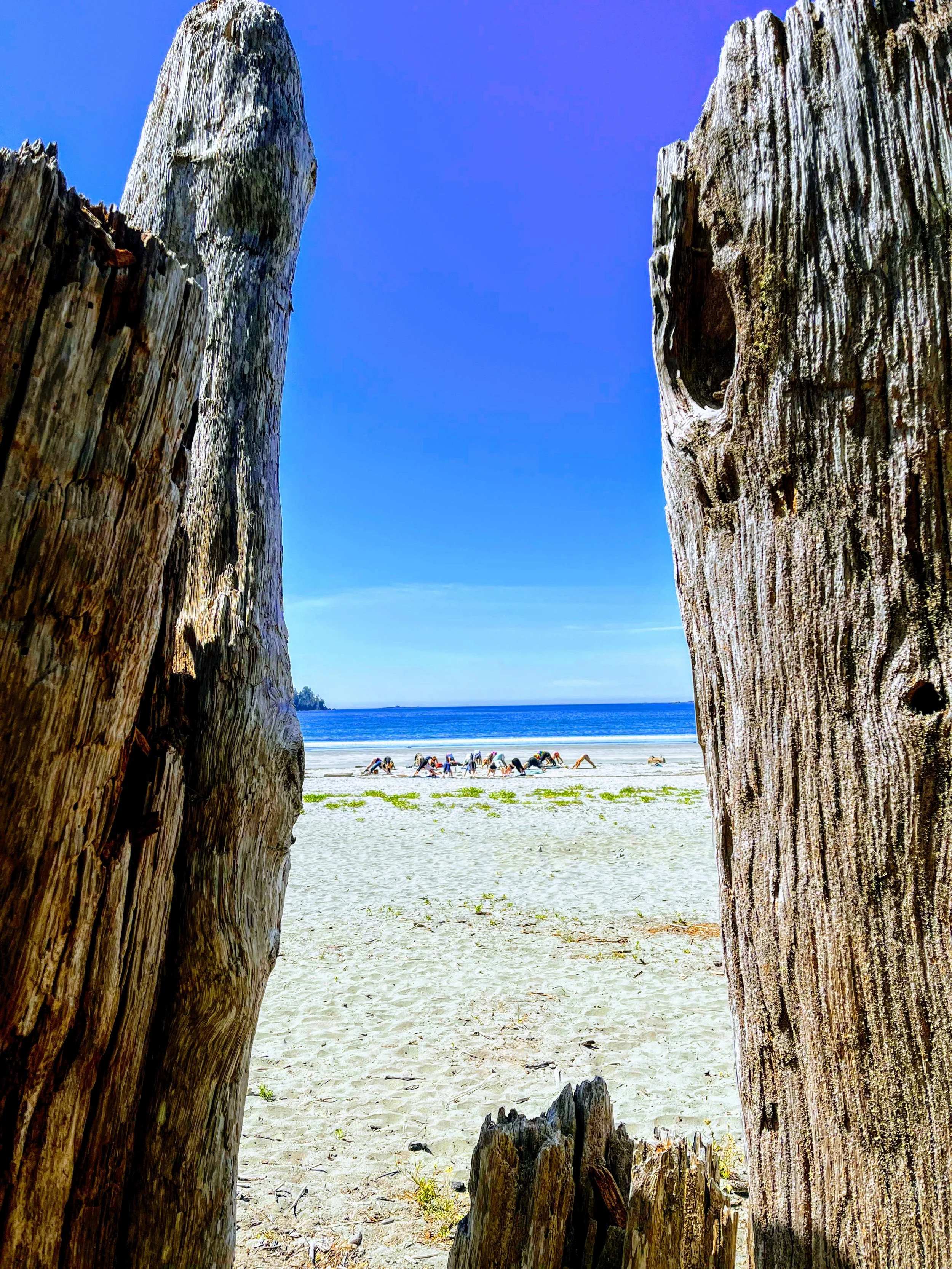 Yoga on the beach at Pachena Bay Music Festival has been a teaching highlight for me. In 2023, I taught an impromptu class on the beach. I put out a sign the day before and had 20 people show up! (Bottom photo)